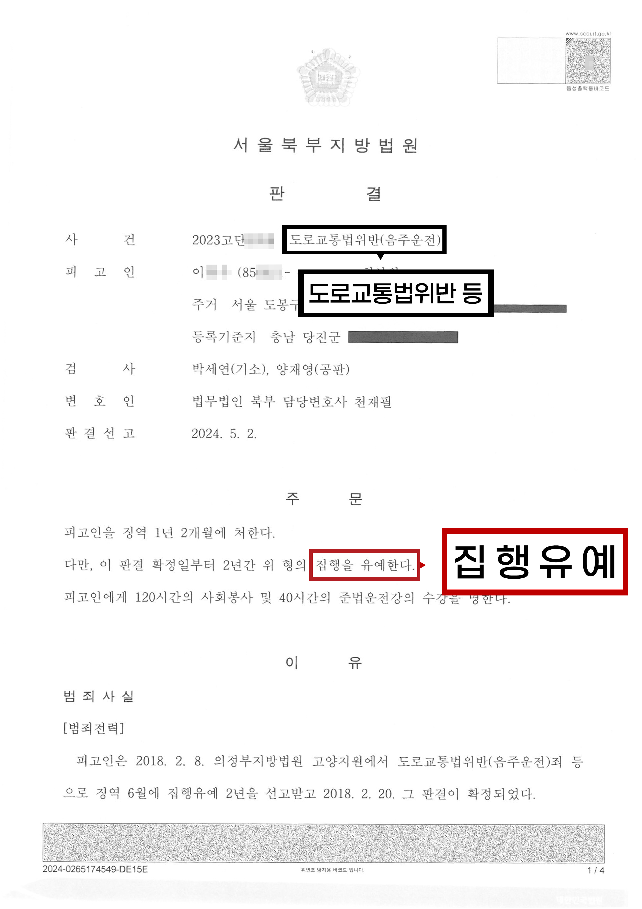 의뢰인은 집행유예 판결을 받아 구속되지 않고 성실한 경제활동을 통해 소중한 가족을 지킬 수 있는 선처의 기회를 부여받을 수 있었음. 의뢰인은 두 번 다시는 이러한 잘못에 이르지 않을 것임이 매우 뚜렷하게 나타나 변호인으로서도 사회를 바람직한 방향으로 더욱 유익하게 만드는 것에 일조를 할 수 있다는 것에 커다란 보람을 느낌.